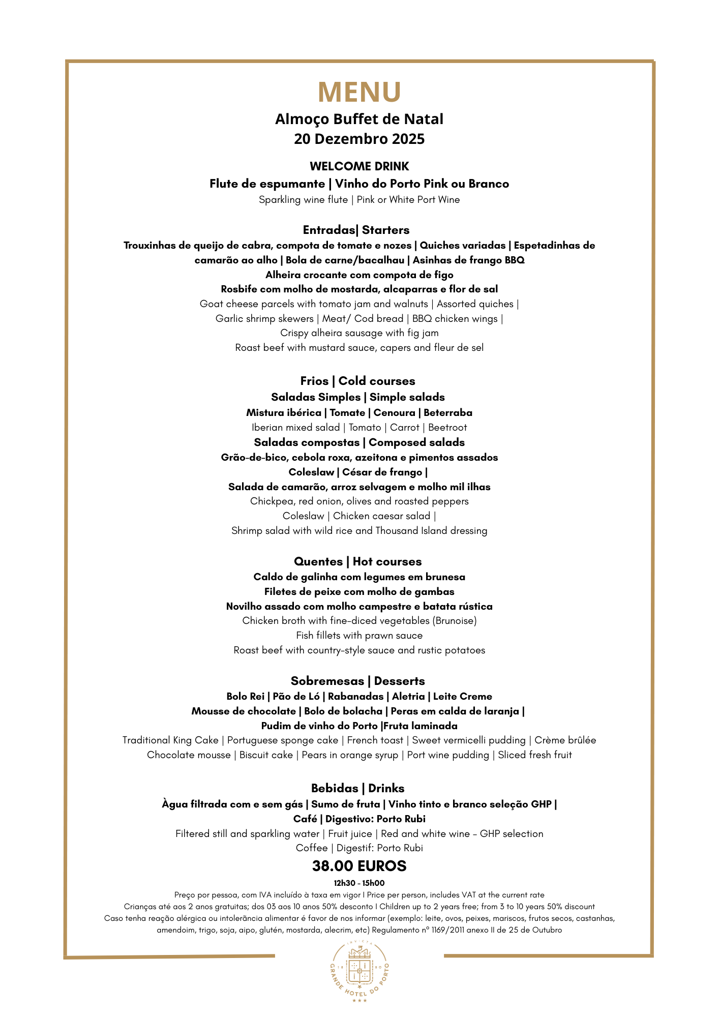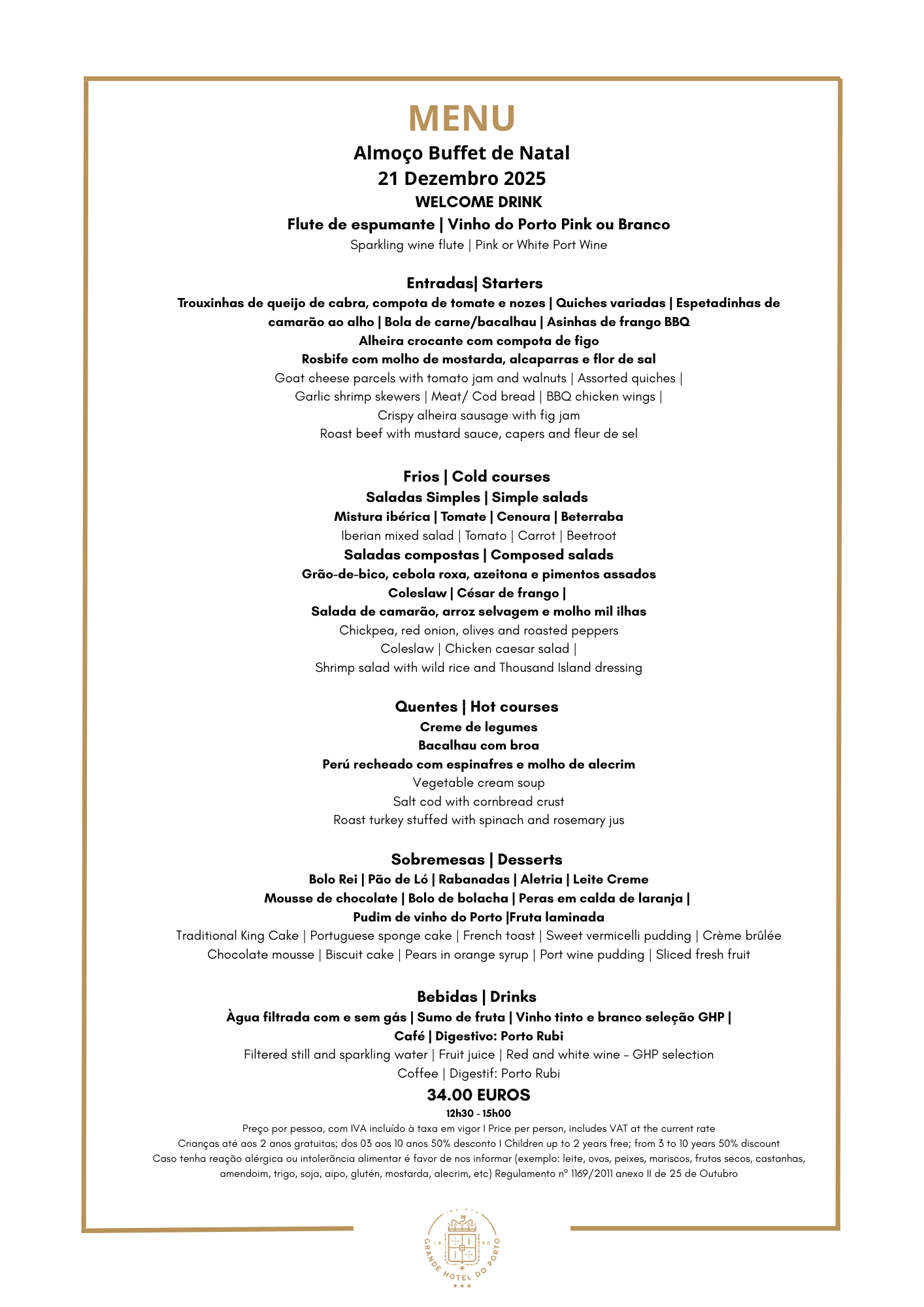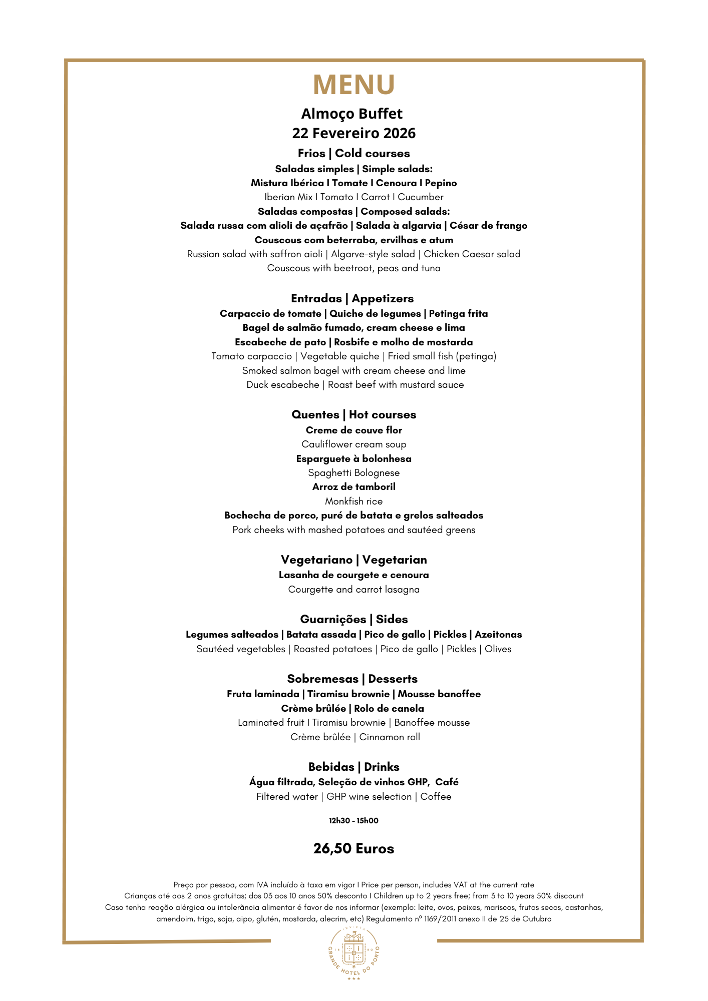 Almoço Buffet de Grande Hotel do Porto em Porto. Site Oficial.